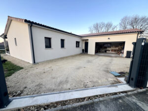 Sur ce projet, l’objectif était d’obtenir un extérieur net, pratique et bien fini, avec une vraie logique d’usage : une zone carrossable robuste pour l’accès maison/garage, et des finitions qui structurent l’espace. Les prestations réalisées pour l’aménagement extérieur de cette maison en Charente Maritime comprennent la préparation du terrain, la protection et le drainage, puis la pose des revêtements et des finitions.