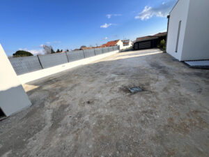 Le terrassement est la première étape. Il consiste à préparer le terrain : mise à niveau, correction des irrégularités, gestion des pentes et création d’une base cohérente. Sur une entrée de maison, les travaux de terrassement sont indispensables pour obtenir une surface régulière et éviter les zones où l’eau pourrait stagner.