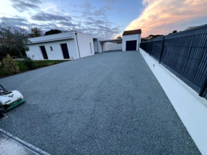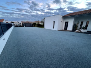 Ce chantier illustre parfaitement l’intérêt des graviers stabilisés en Charente Maritime : conserver l’aspect naturel du gravier, tout en évitant les inconvénients du gravier “libre”.