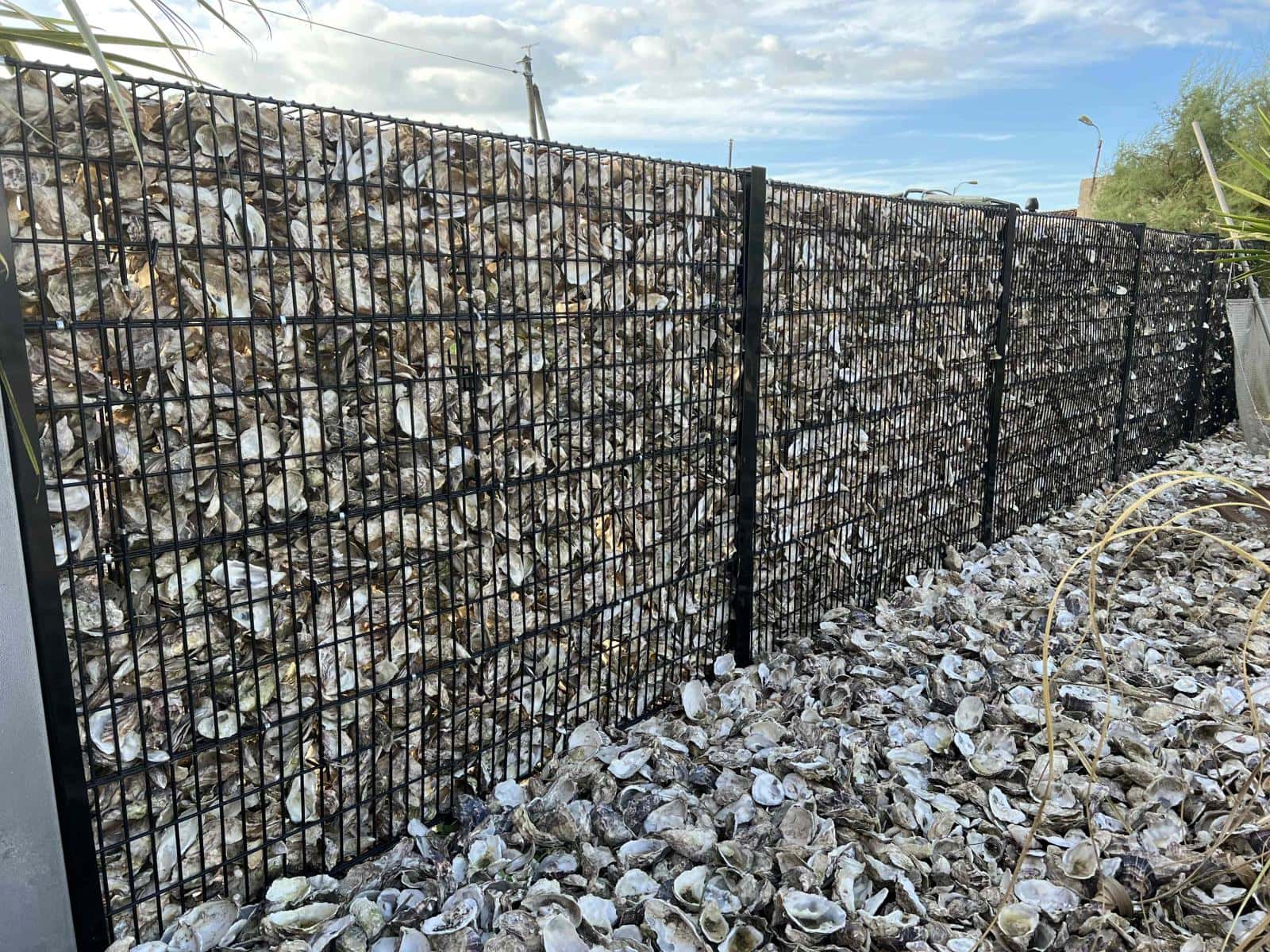 - pose de clôture gabion avec remplissage en coquilles d’huîtres
