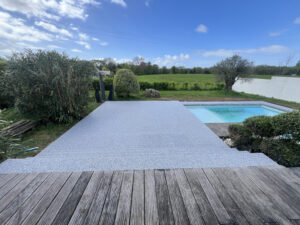 Si vous recherchez une solution de moquette de pierre à Médis, cette réalisation illustre parfaitement l’intérêt d’un revêtement de sol extérieur en Charente Maritime en résine drainante pour moderniser un contour de piscine sans compromis sur la qualité des finitions. C’est également le choix qui a été fait par nos clients lors de cet aménagement de plage de piscine en résine drainante à Étaules, accompagné d’une pose de clôture en gabion assortie.