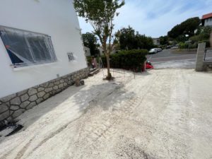 Sur ce chantier, l’application du béton lavé, choisi comme revêtement de sol extérieur principal, a été précédée par la pose de treillis soudé, une étape courante pour renforcer la structure du béton et favoriser une meilleure tenue dans le temps (notamment sur les zones sollicitées, comme une entrée de garage). Notre entreprise d’aménagement extérieur à Royan applique ce processus dans de nombreux chantiers, comme pour la réalisation de ce béton lavé pour entrée de maison à Bourcefranc le Chapus, qui a nécessité : préparation, treillis, puis mise en œuvre du revêtement.