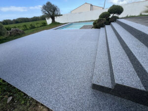 Autour de Royan, on retrouve cette résine drainante principalement sur les plages de piscine, les terrasses face à l’océan, les allées de jardin et les tours de bassin. Les propriétaires l’adoptent également pour rénover les escaliers extérieurs, les zones d’accès à la plage privée ou encore les parkings résidentiels. Sa polyvalence permet de traiter aussi bien des surfaces horizontales que des zones inclinées, toujours avec une excellente tenue dans le temps.